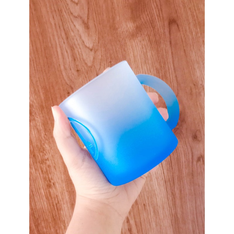 Mug en vidrio templado, con capacidad de 11ONZ. Resistente a bebidas preferiblemente frías y tibias y de fácil lavado.